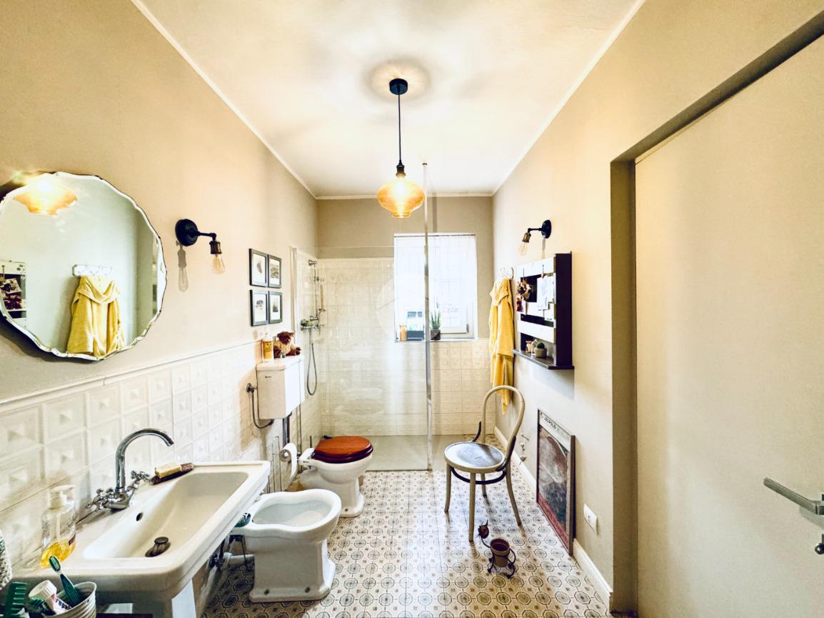 La presenza di doppi servizi garantisce comodità per tutta la famiglia. Un balcone offre uno spazio esterno privato, ideale per momenti di relax. Il riscaldamento autonomo e il climatizzatore assicurano un ambiente confortevole in ogni stagione. All'esterno, un cortile con giardino e una tettoia offrono ulteriori spazi per il tempo libero. Completano la proprietà un posto auto riservato. Ristrutturata nel 2014, questa casa del 1950 combina il fascino del passato con le comodità moderne, rappresentando una soluzione ideale per chi cerca tranquillità e indipendenza.